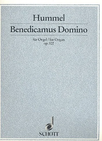 A Gregorian Benedicamus Domino serves Bertold Hummel as the starting point for his organ work op. 102. Right at the beginning, the organ introduces the basic material of the piece: the incipit of the chorale (consisting of whole-tone steps) is contrasted with intervallic material (the tritone, which is to be formed by three whole-tone steps), whole-tone scales mediate between the two constituents. A new element is introduced by the solo pedal, whose motivic material can be traced back to semitone steps. This ultimately acts as the trigger for the entry of the complete chorale, in parallel fourths and initially in a quiet flute register. The musical design elements that are now complete: tritone/whole tone scale, semitone connection, parallel displacement are now performed in an intensified form before the chorale sounds fortissimo. A song-like middle section is repeatedly interrupted and ultimately replaced by toccata-like insertions enriched with repetitive groups. A final upswing leads to an apotheotic hymn of praise in order to bring the final entry of the chorale as a kind of swan song in a quiet register (accompanied by the vox caelestis). Repetitive segments on a small scale and repetitions of individual parts on a large scale structure the work; the technique of accompanying the chorale with parallel shifted chords can be interpreted as a reminiscence of the medieval organum (and similar procedures such as fauxbourdon).