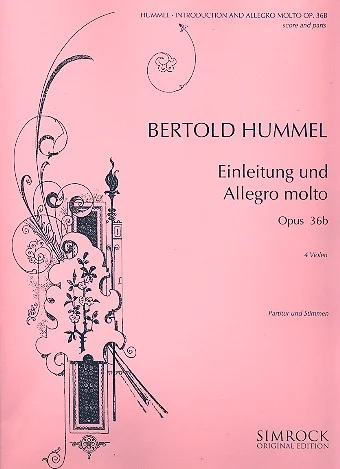 At the suggestion of his viola-playing daughter-in-law Andrea, Bertold Hummel arranged the final movement(Allegro molto) of his Divertimento for 4 violins or violin orchestra op. 36a for 4 violas. The piece was premiered in Hamburg on 6 February 2000 as an effective finale to a viola concert programme.