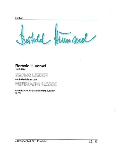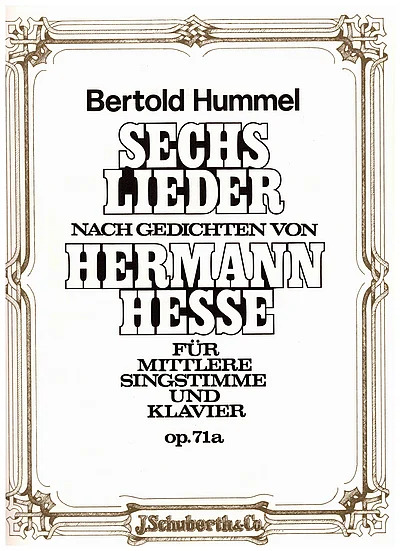 Title: 6 Lieder after texts by Hermann Hesse set to music by Bertold Hummel op. 71 - Length: 22 pages - Date: November 1978 - Location:
