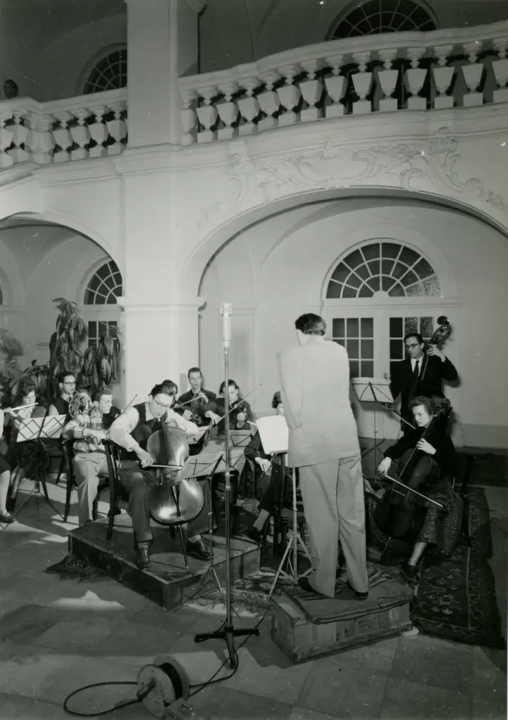 De retour en Allemagne, le musicien, désormais marié, prend un poste de cantor à St. Konrad à Fribourg et est régulièrement sollicité en tant que violoncelliste (photo: 1951) pour des formations plus importantes au sein de l'orchestre symphonique de la Südwestfunk de Baden-Baden et des scènes municipales de Fribourg. Il va de soi que ses talents de compositeur et d'arrangeur sont également mis à contribution. Entre-temps, les premiers de ses six fils (photo: famille Hummel) sont nés et le coût de la vie augmente. Sa femme Inken exerce - jusque dans les années 1990 ! - exerce avec succès son métier de professeur de violon (photo: 1961) et permet ainsi à son mari de se concentrer davantage sur la composition. C'est ainsi que naissent l'opéra de chambre "Des Kaisers neue Kleider", un ballet pour le Théâtre national d'Oldenbourg et pas moins de 50 mouvements d'orgue pour le nouveau livre d'orgue de l'archidiocèse de Fribourg. Les premières distinctions, comme par exemple le prix culturel de la Fédération de l'industrie allemande (1956), le prix de composition de la ville de Stuttgart (1960) ou le prix Robert Schumann de la ville de Düsseldorf (1961), marquent la courbe de son ascension.